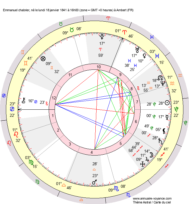 Emmanuel Chabrier est né=?> le lundi 18 janvier 1841 à 16:00