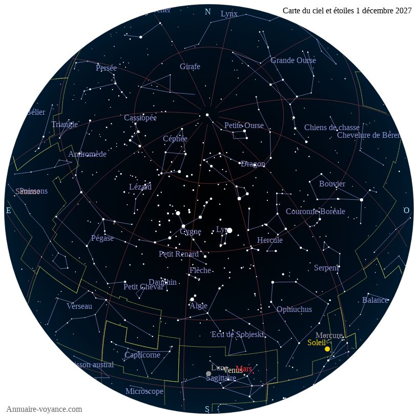 Carte du ciel du 1 décembre 2027 carte des étoiles du 1 12 2027