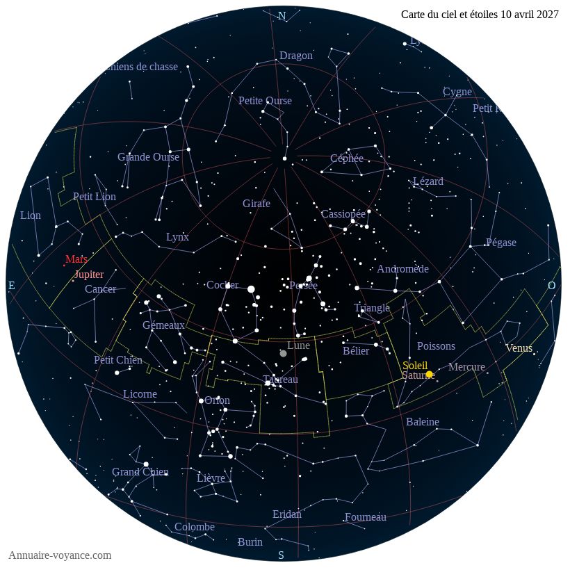 Carte du ciel du 10 avril 2027 carte des étoiles du 10 4 2027