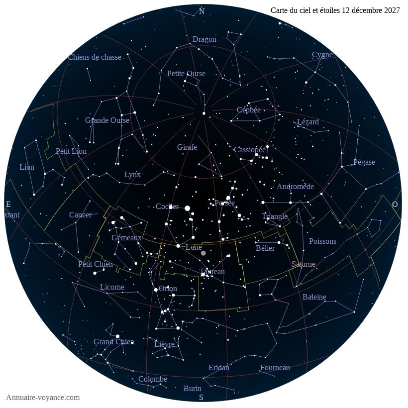 Carte du ciel du 12 décembre 2027 carte des étoiles du 12 12 2027