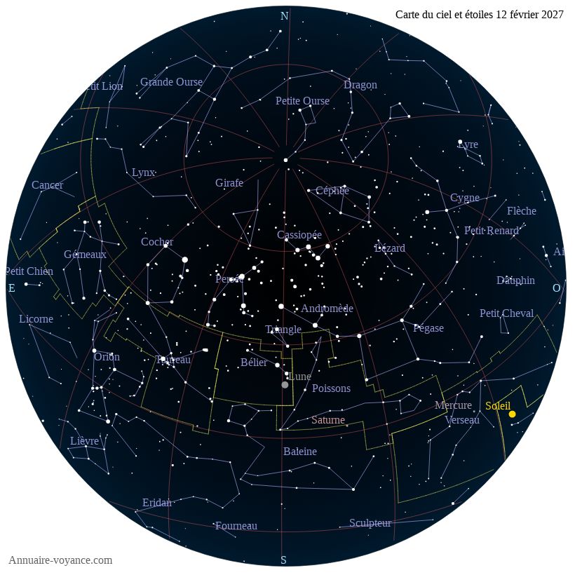 Carte du ciel du 12 février 2027 carte des étoiles du 12 2 2027