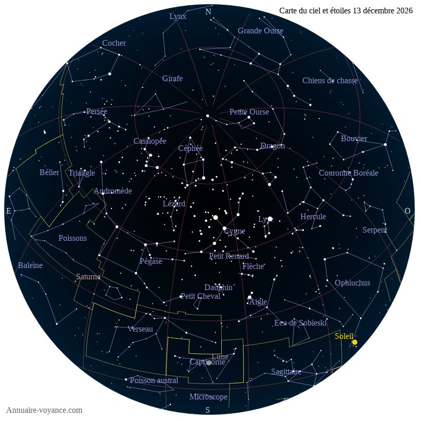 Carte du ciel du 13 décembre 2026 carte des étoiles du 13 12 2026