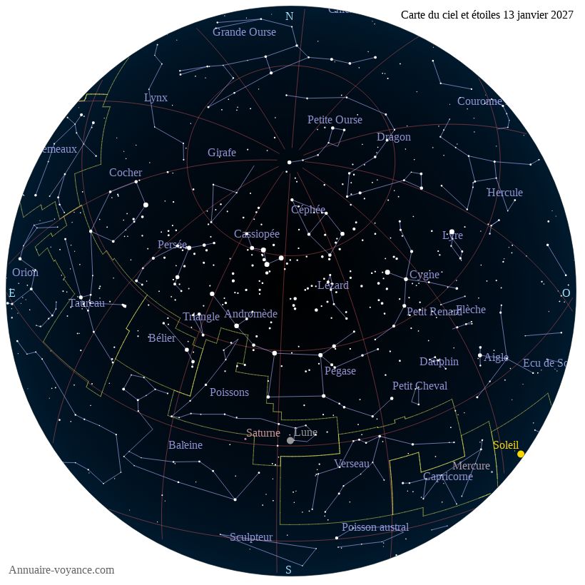 Carte du ciel du 13 janvier 2027 carte des étoiles du 13 1 2027