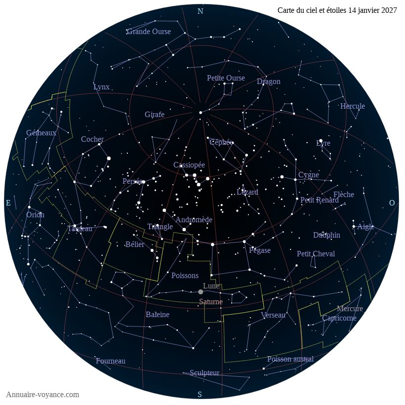 Carte du ciel du 14 janvier 2027 carte des étoiles du 14 1 2027