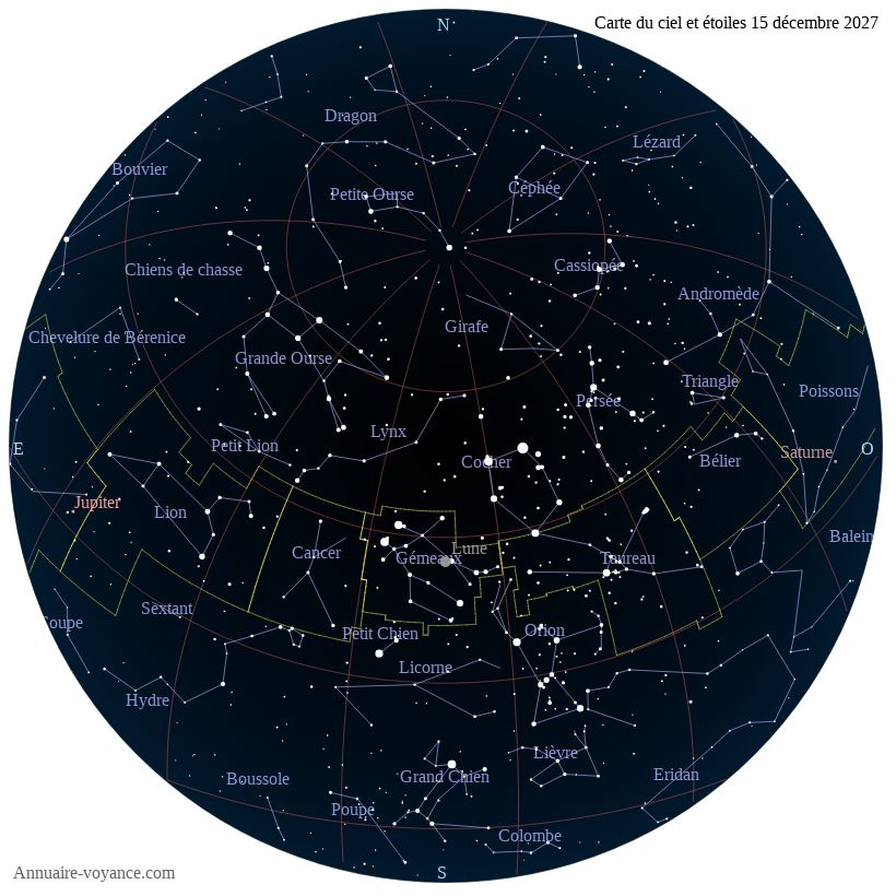 Carte du ciel et des étoiles du 15 décembre 2027