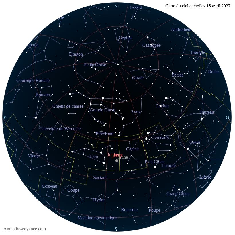Carte du ciel du 15 avril 2027 carte des étoiles du 15 4 2027