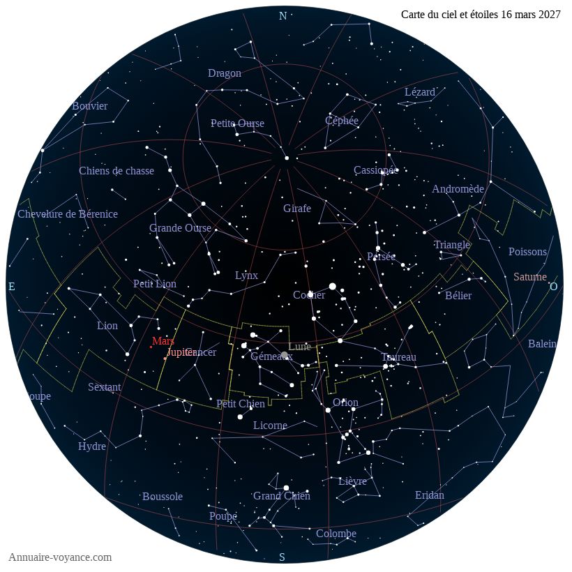 Carte du ciel du 16 mars 2027 carte des étoiles du 16 3 2027