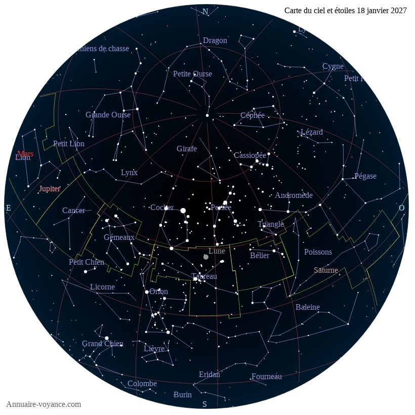 Carte du ciel du 18 janvier 2027 carte des étoiles du 18 1 2027