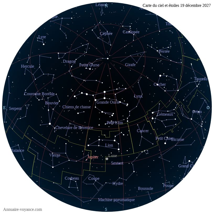 Carte du ciel du 19 décembre 2027 carte des étoiles du 19 12 2027