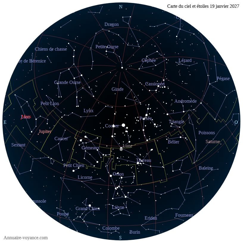 Carte du ciel du 19 janvier 2027 carte des étoiles du 19 1 2027