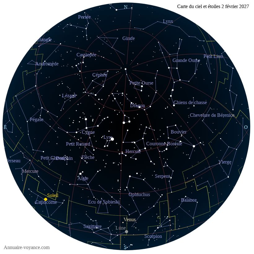 Carte du ciel du 2 février 2027 carte des étoiles du 2 2 2027