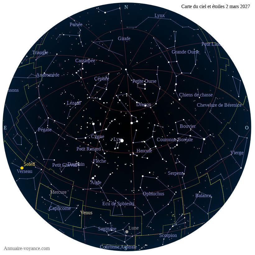 Carte du ciel du 2 mars 2027 carte des étoiles du 2 3 2027
