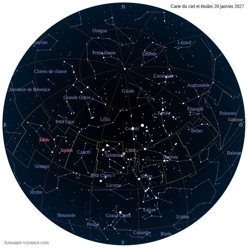 Carte du ciel du 20 janvier 2027 carte des étoiles du 20 1 2027