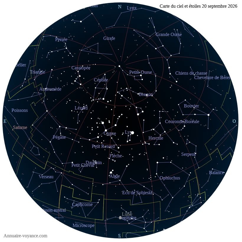 Carte du ciel du 20 septembre 2026 carte des étoiles du 20 9 2026