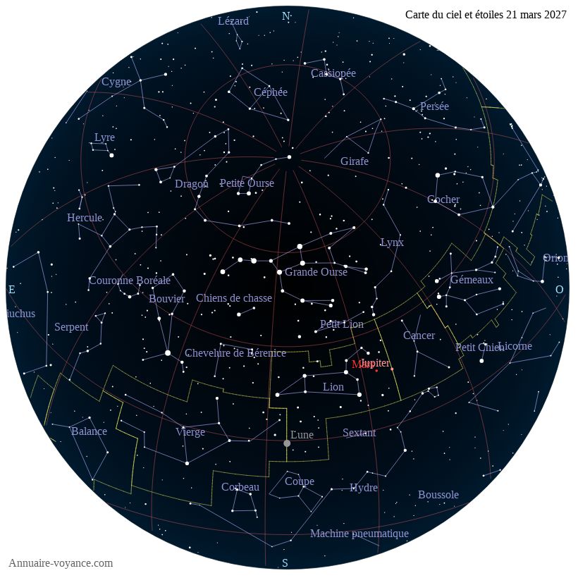 Carte du ciel du 21 mars 2027 carte des étoiles du 21 3 2027