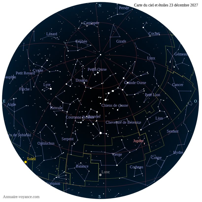 Carte du ciel du 23 décembre 2027 carte des étoiles du 23 12 2027