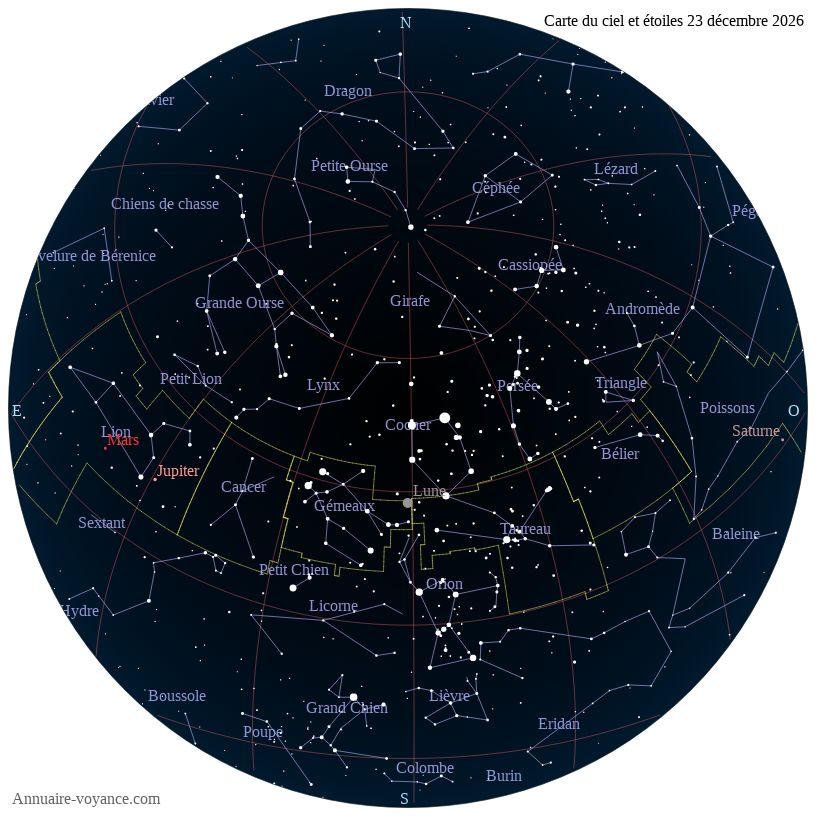Carte du ciel du 23 décembre 2026 carte des étoiles du 23 12 2026