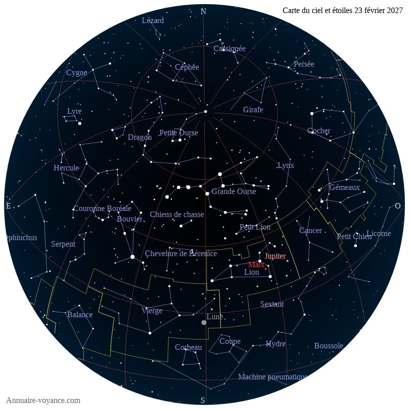 Carte du ciel du 23 février 2027 carte des étoiles du 23 2 2027
