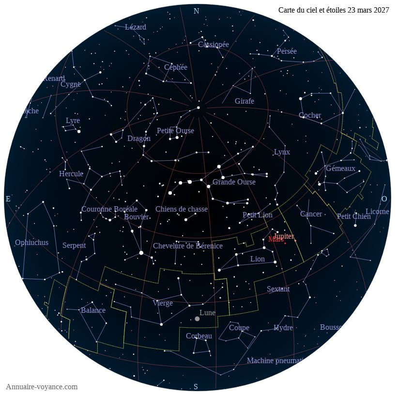 Carte du ciel du 23 mars 2027 carte des étoiles du 23 3 2027