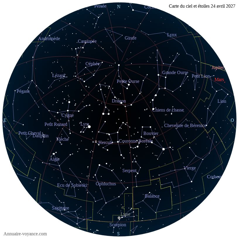 Carte du ciel du 24 avril 2027 carte des étoiles du 24 4 2027