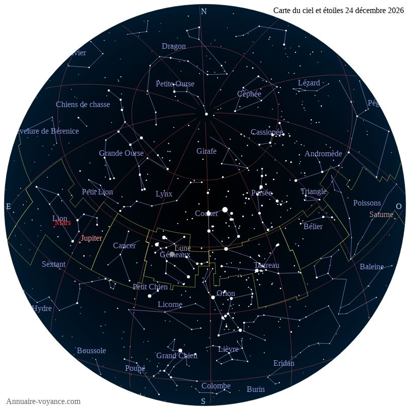 Carte du ciel du 24 décembre 2026 carte des étoiles du 24 12 2026