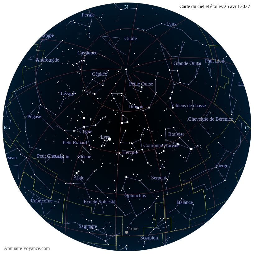 Carte du ciel du 25 avril 2027 carte des étoiles du 25 4 2027