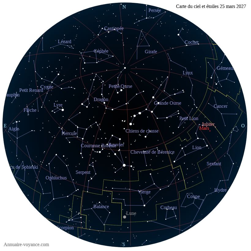 Carte du ciel du 25 mars 2027 carte des étoiles du 25 3 2027