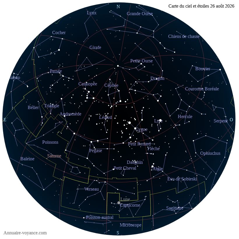 Carte du ciel du 26 août 2026 carte des étoiles du 26 8 2026