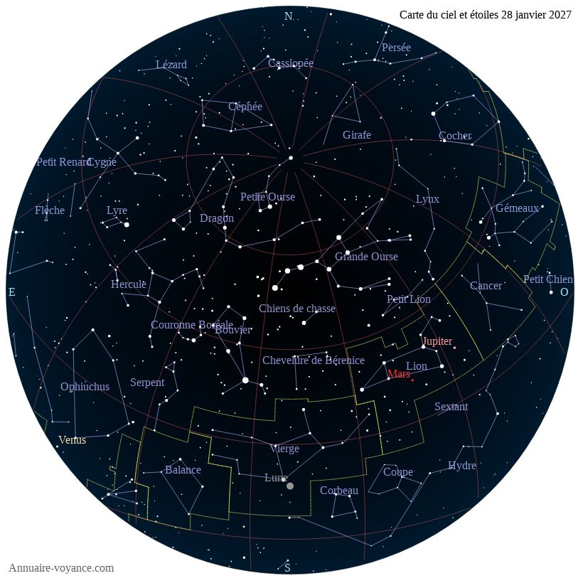 Carte du ciel du 28 janvier 2027 carte des étoiles du 28 1 2027