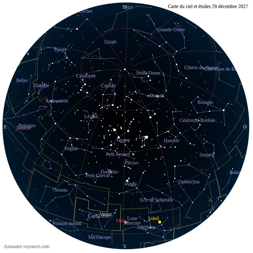 Carte du ciel du 29 décembre 2027 carte des étoiles du 29 12 2027