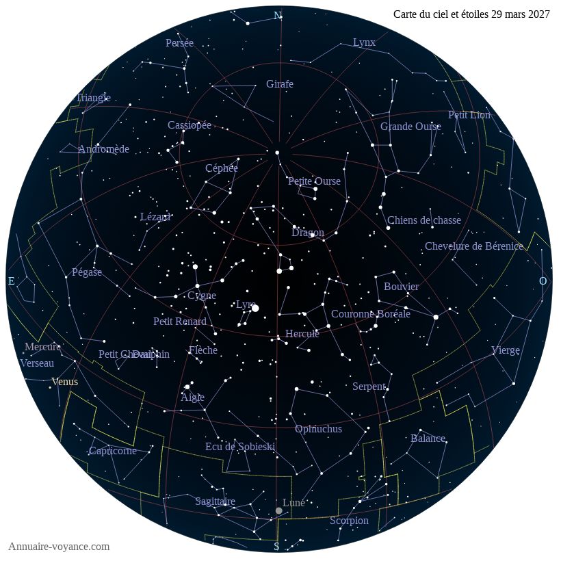 Carte du ciel du 29 mars 2027 carte des étoiles du 29 3 2027