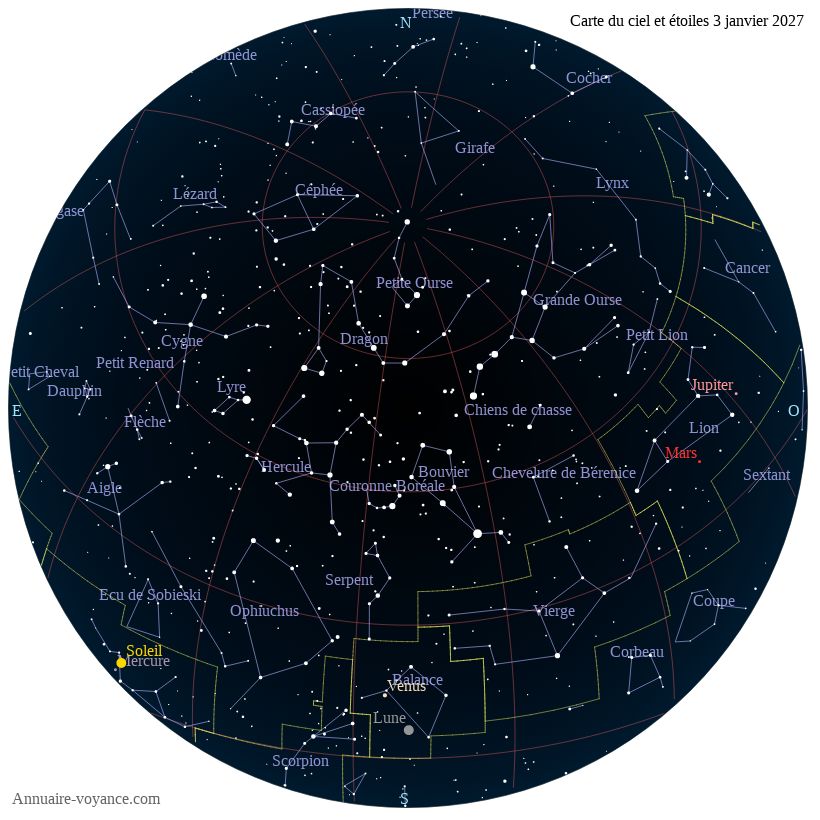 Carte du ciel du 3 janvier 2027 carte des étoiles du 3 1 2027