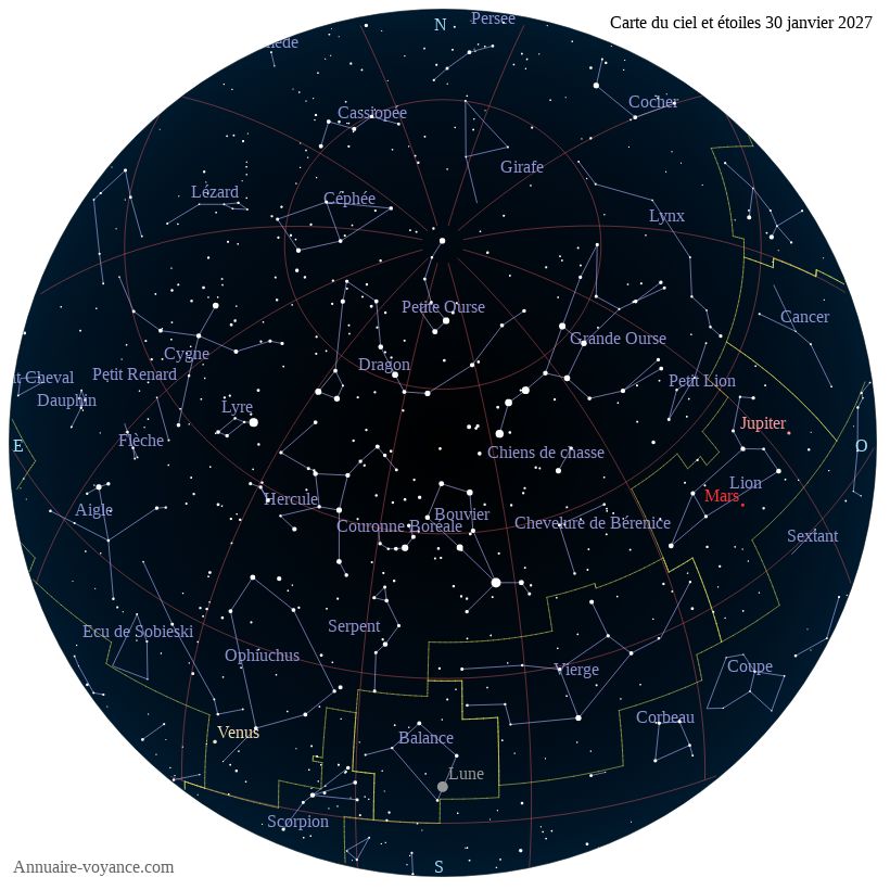 Carte du ciel du 30 janvier 2027 carte des étoiles du 30 1 2027