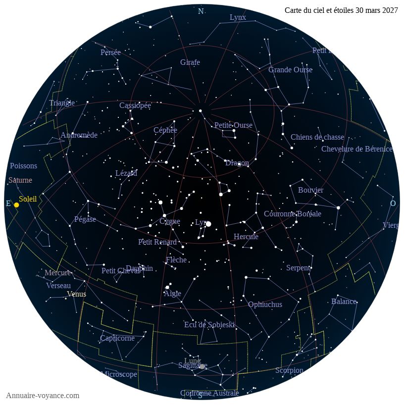 Carte du ciel du 30 mars 2027 carte des étoiles du 30 3 2027