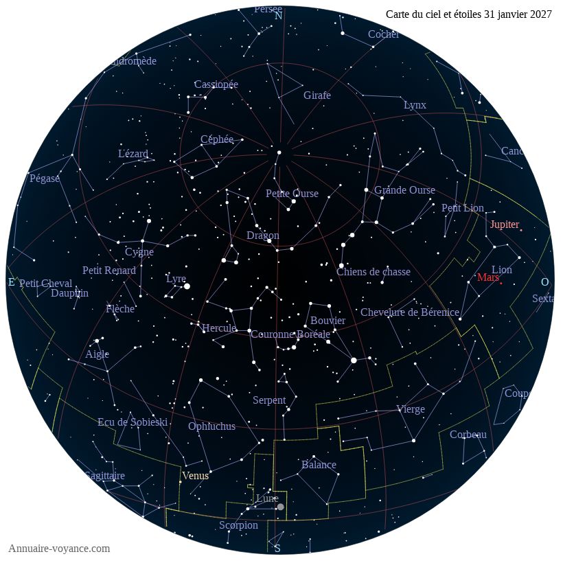 Carte du ciel du 31 janvier 2027 carte des étoiles du 31 1 2027