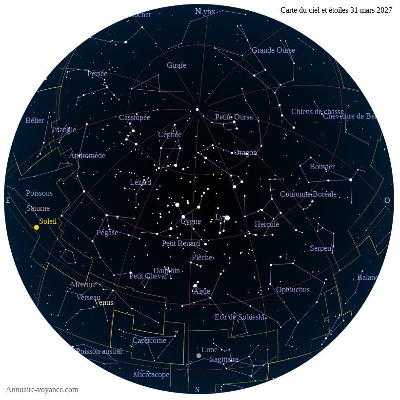 Carte du ciel du 31 mars 2027 carte des étoiles du 31 3 2027