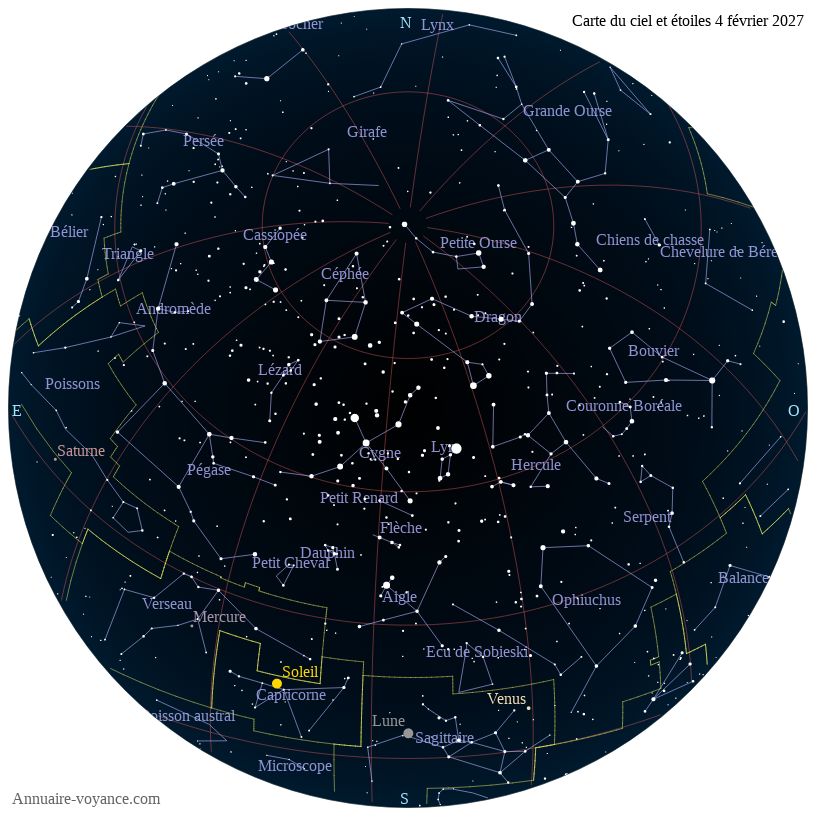 Carte du ciel du 4 février 2027 carte des étoiles du 4 2 2027