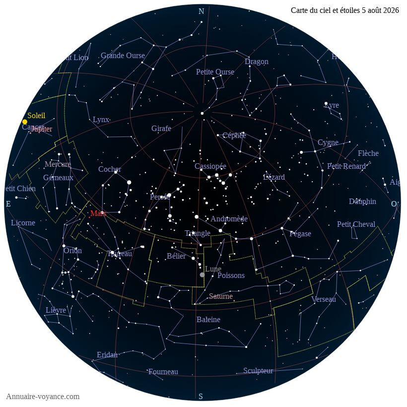 Carte du ciel du 5 août 2026 carte des étoiles du 5 8 2026