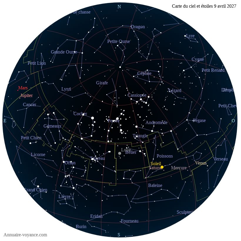 Carte du ciel du 9 avril 2027 carte des étoiles du 9 4 2027