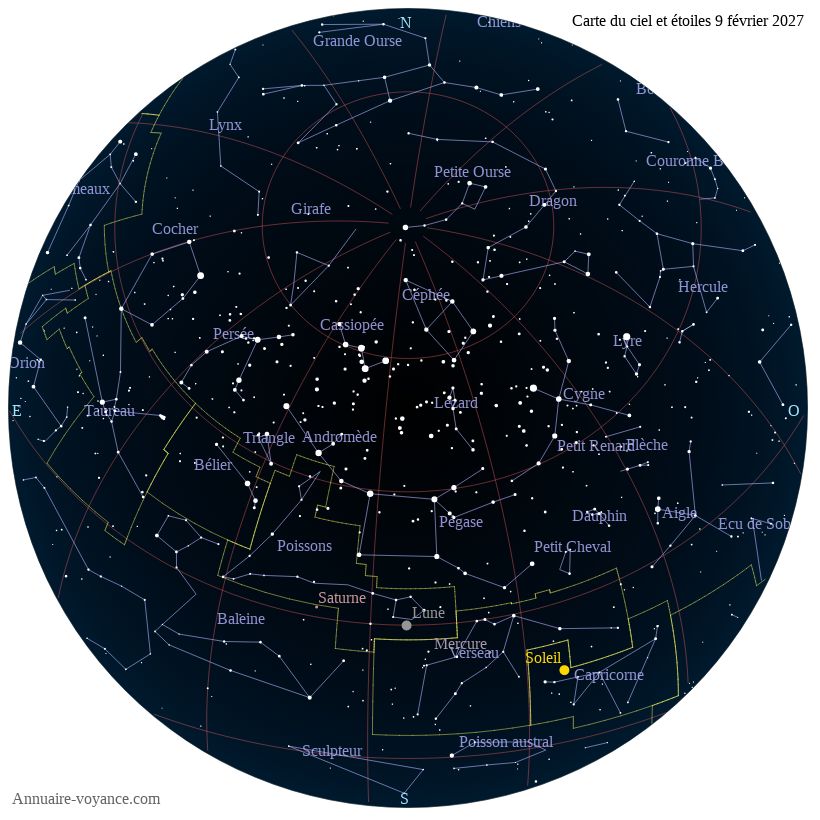 Carte du ciel du 9 février 2027 carte des étoiles du 9 2 2027